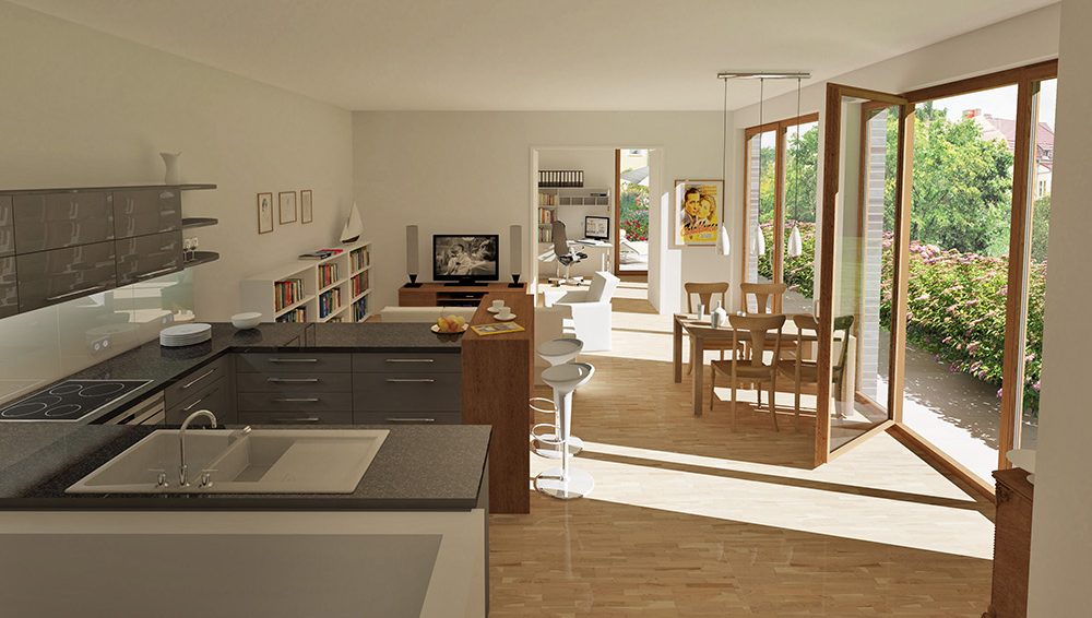 Die Drei- bis Vierzimmerwohnungen haben eine Größe von 94-130 m² und mindestens eine südorientierte Loggia.