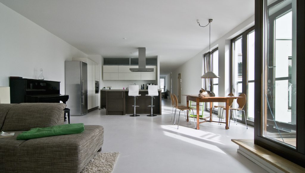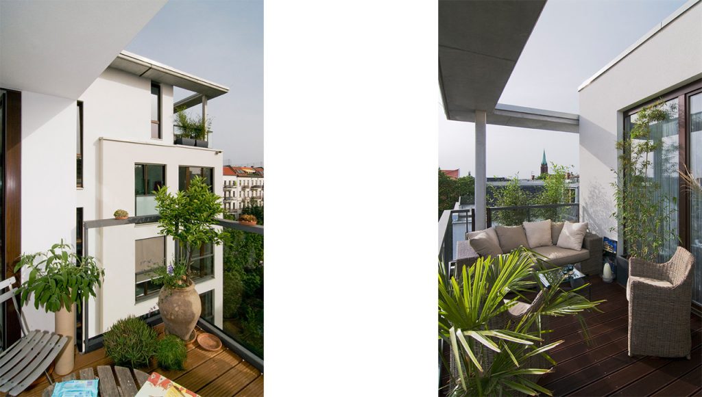 Die Flexibilität der Grundrissgestaltung und eine Verbindung großzügigen Altbau- Wohngefühls mit Neubaustandard waren die Entwurfsprämissen bei der Konzeption des Neubaus. Die Reduzierung der tragenden Wände auf die Außenwände entlang der seitlichen Grundstücksgrenzen und den Treppenhauskern ermöglichen eine geschoßweise auf die Bedürfnisse der Käufer freie und individuell zugeschnittene Grundrissgestaltung. So sind von 60 m² Apartments bis hin zu 200 m² Etagenwohnungen unterschiedliche Wohnungsgrößen realisiert.
